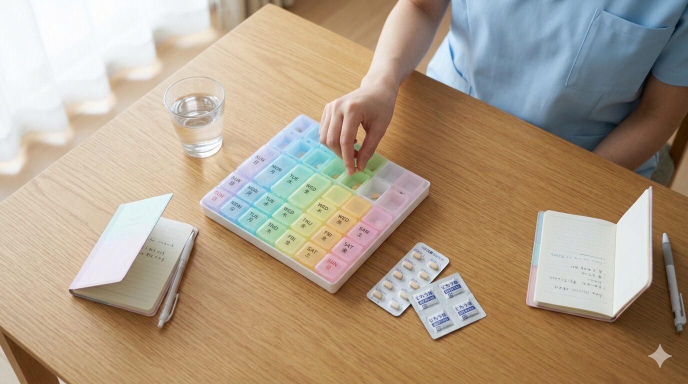 Q. 訪問看護師は薬をセットしてくれますか? A. はい、訪問看護師はお薬カレンダーや服薬ケースへの薬のセットを行うことができます。「服薬ができているか確認する」だけなら訪問介護でも対応できますが、薬のセットや服薬による体調変化の観察は看護師の専門的な支援が必要です。利用者様の状態に合わせてサポート内容を調整します。