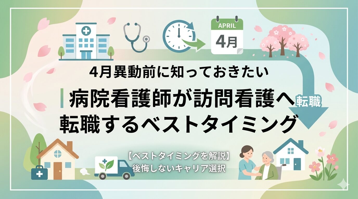 3〜4月は、看護師の転職に最も動きが集中するシーズンです。病院の人事異動や年度末退職が重なるこの時期、「今が転職の転換点では?」と感じている方も多いのではないでしょうか。訪問看護への転職を考えているなら、今まさに情報収集と行動を始めるタイミングです。この記事では、病院から訪問看護に移るベストなスケジュールと、未経験でも安心できる職場選びのポイントをお伝えします。