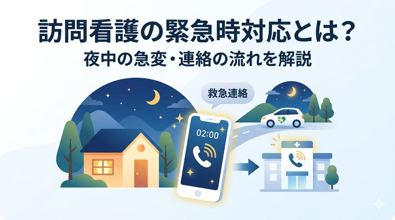 夜中に体調が急変したとき、「どこに電話すればいいのか」と不安になったご経験はないでしょうか。訪問看護ステーションの24時間対応は、そんな夜間の不安を支えるための仕組みです。「本当に夜中でも連絡できるのか」「救急車を呼ぶべき状況とはどんな状態か」——この記事では、緊急時の連絡フローと対応の流れを具体的にお伝えします。