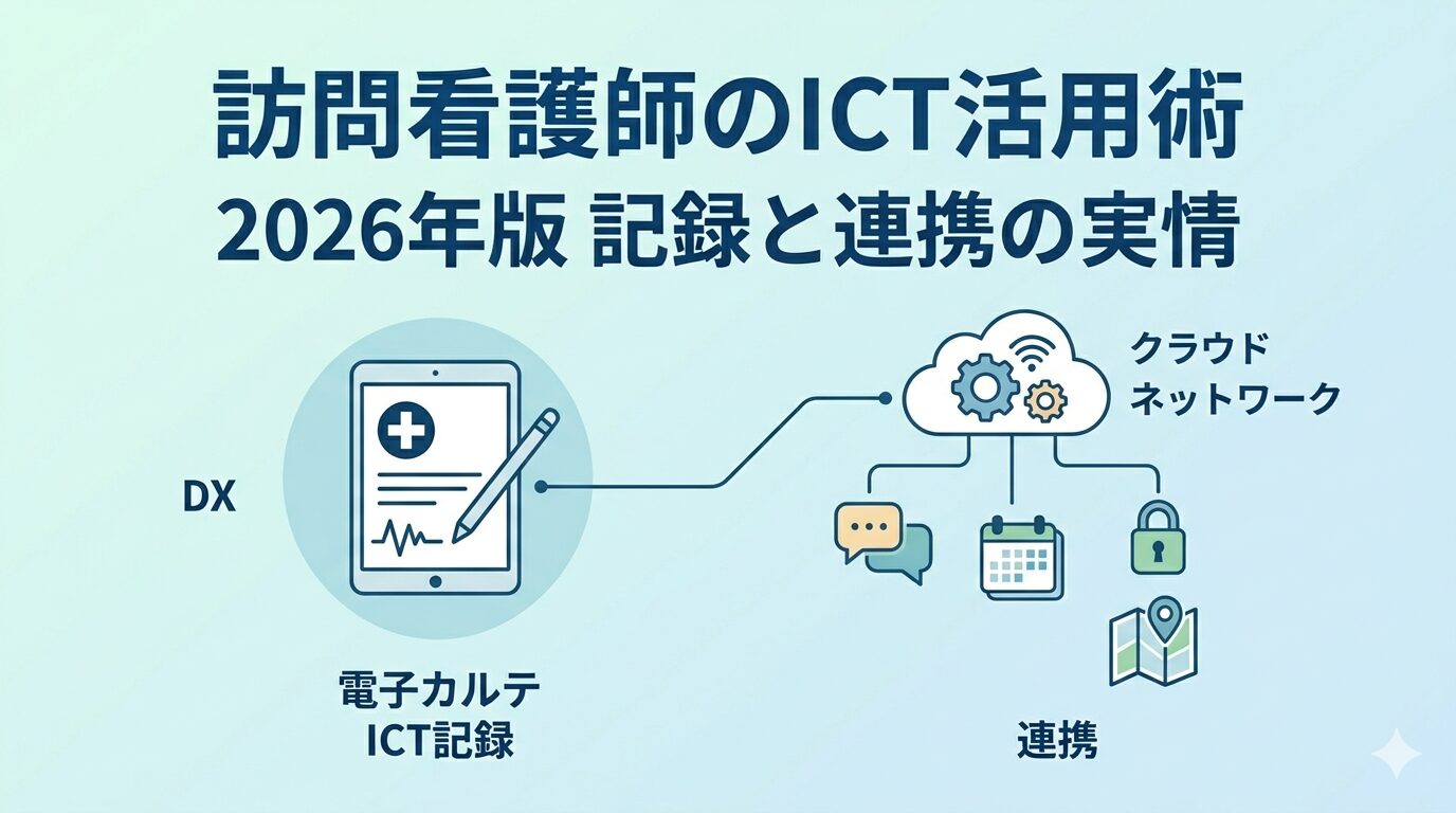 訪問看護のICT活用は、2026年時点で「整っている現場」が大多数となっています。電子カルテ・タブレット・多職種連携ツールの普及により、記録業務の効率化と情報共有の迅速化が同時に実現されています。厚生労働省による在宅医療DXの政策的後押しもあり、今後もこの流れは加速する見込みです。