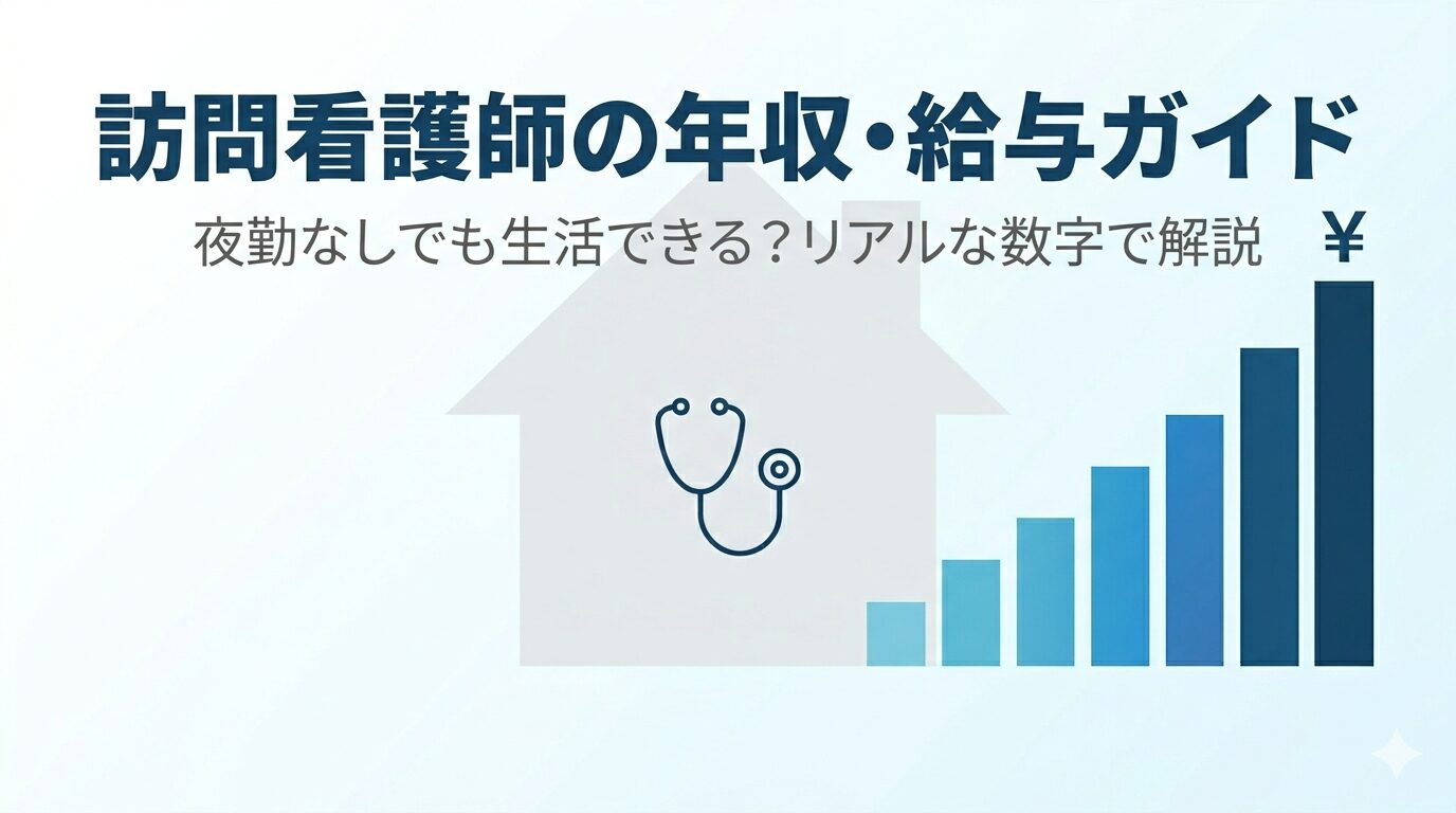 夜勤をやめたいけれど、収入が下がるのが不安——そんな思いを抱えながら転職を迷っている看護師は少なくありません。訪問看護師は基本的に日勤のみで、2024年度の調査では平均年収が約450万〜560万円前後と報告されています。夜勤手当がなくなる分の差は確かにありますが、オンコール手当やインセンティブ制度、そして2026年6月から新たに始まる処遇改善加算により、給与水準は着実に上がりつつあります。この記事では、訪問看護師の給与のリアルを数字で正直にお伝えします。